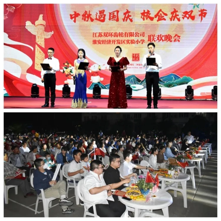 9月28日晚,江苏双环员工宿舍活动广场,灯火璀璨,音律悠扬。由江苏双环与淮安经济开发区实验小学联合举办的2023“中秋遇国庆 校企庆双节”联谊晚会,正在这里温馨举行。淮安经济开发区实验小学校长施学兵、副校长姚应东,江苏双环总经理卢浩,副总经理汪土华、赵俊杰、陈香籽等参加本次联欢晚会,晚会现场还吸引了双环员工、员工家属及开发区实验小学师生等300余人。