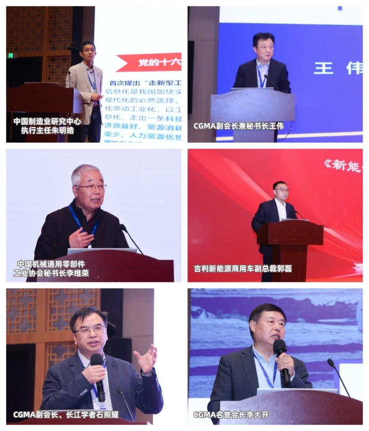 中国机械工业联合会党委常委杨学桐,中国机械通用零部件工业协会秘书长李维荣分别作大会主旨报告。中国制造业研究中心执行主任朱明皓,CGMA副会长兼秘书长王伟,吉利新能源商用车副总裁郭磊,CGMA副会长、长江学者石照耀,CGMA名誉会长李大开,中国风电协会副主任刘颖明,机械工业规划研究院副院长秦龙杰,中国工程机械工业协会副会长李建友,重庆机床(集团)有限责任公司总工程师蒋林,南京科润工业介质技术专家袁峰,CGMA常务副会长、江苏中工高端装备研究院总经理王长路分别作了题为《深入推动智能制造,加快推动新型工业化》《中国齿轮行业形势分析》《新能源商用车发展与市场需求》《电动化催生齿轮行业“V型”增长结构》《新能源汽车发展和对齿轮行业的影响》《中国风电产业与技术发展现状》《制造业高质量专项政策解读》《深化产业链协同创新 推进工程机械高质量发展》《携手用户,共强齿轮产业链》《用流动科技助新能源汽车电机轴智造远航》《中国齿轮与电驱动产业发展分析与建议》的报告。