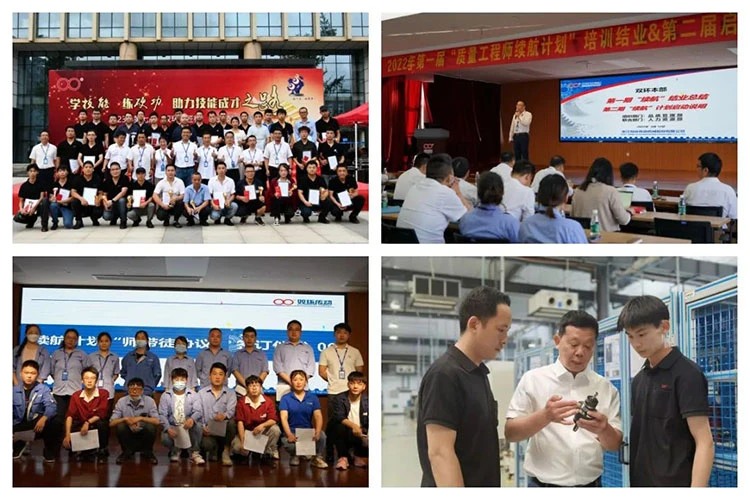 同时,双环传动高度重视工匠精神的传承,一方面通过开展双环工匠评选,弘扬工匠文化,鼓励双环工匠在着力打造双环品牌的同时成就自身价值;一方面秉承“德才兼备,以德为先;知人善任,人尽其才”的人才发展理念,积极打造师带徒传承文化,充分调动内外部培训资源,推进全员师带徒机制建立。通过人力资源、技术等部门的合作,积极推进工匠传承培养机制,实现技艺传承,搭建起学习交流、资源共享、合作发展、成果展示“四大平台”。