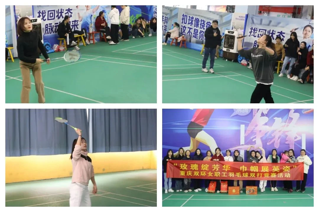 3月8日下午,重庆双环举办女职工羽毛球双打竞赛活动,让员工在健康、欢乐的氛围中感受节日的乐趣。活动现场,双方你来我往、扣人心弦,尽展巾帼风采,吊球、扑球、劈杀、扣杀轮番上演,精彩纷呈,不时引来阵阵欢呼与喝彩。经过激烈角逐,最终决出冠军、亚军、季军。