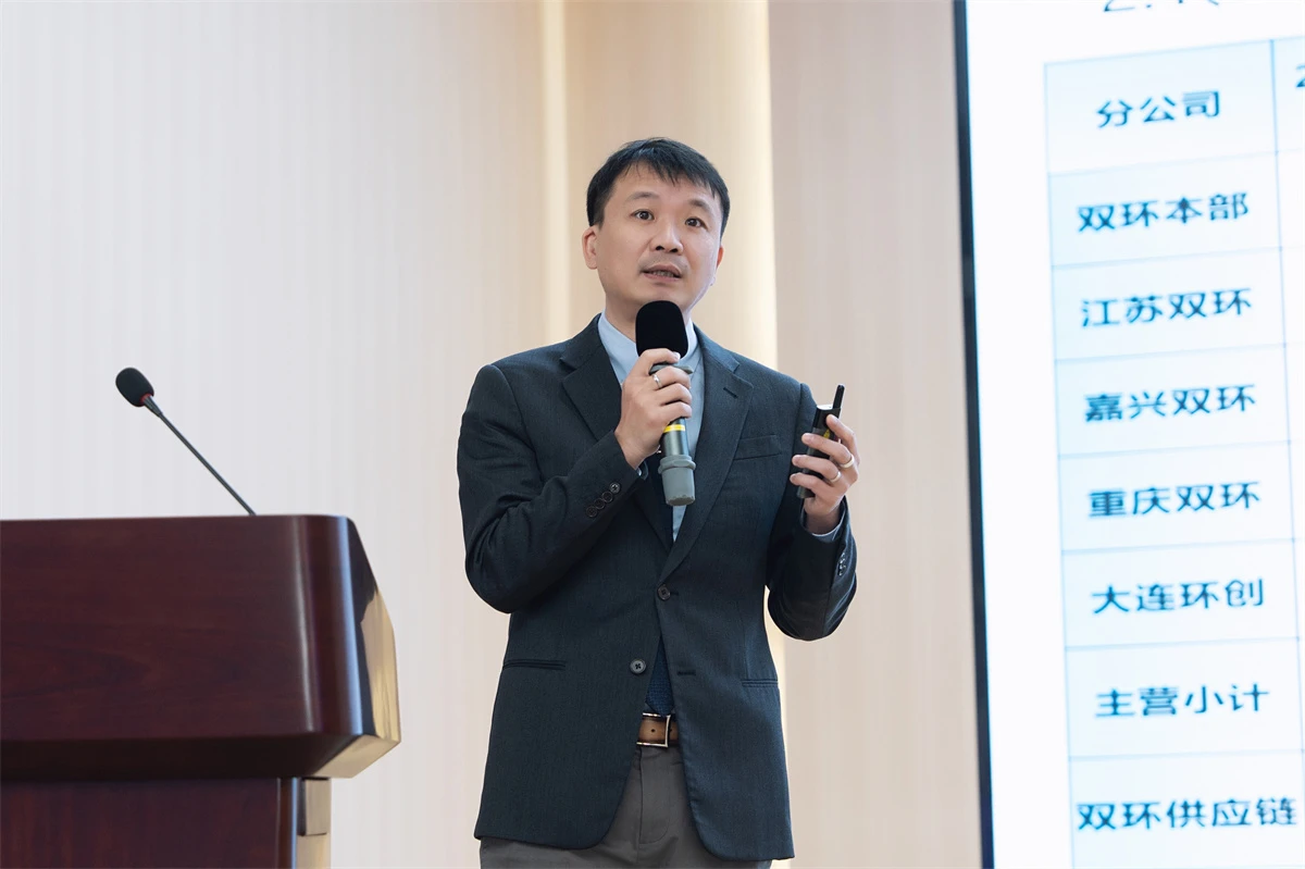 蒋亦卿、李水土、王佩群分别作双环传动2024年营销报告、运营报告、财务报告。双环本部、江苏双环、嘉兴双环、重庆双环、大连环创、双环供应链、双环匈牙利子公司(EVORING)、环动科技、环智云创、环驱科技、双环研究院、江苏环欧,以及未来一号项目组分别做年度汇报。 各集团领导,各子公司总经理或相关负责人在汇报中全面总结回顾了2024年工作落实情况,展示亮点与成就,找出暗点与问题,并深刻剖析原因、提出改进方案;同时明确了2025年重点工作计划,为新一年的发展谋篇布局。