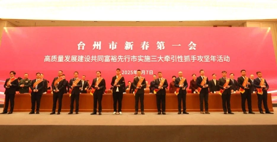 2月7日,台州市召开新春第一会——高质量发展建设共同富裕先行市实施三大牵引性抓手攻坚年活动。大会通报表彰了2024年度台州民营企业贡献50强,双环传动荣登榜单,相比去年名次攀升19位。该荣誉是对双环在过去一年中经济贡献、依法纳税、诚信经营、积极履行社会责任的充分认可,双环传动副总经理、双环本部总经理周志强代表公司领奖。