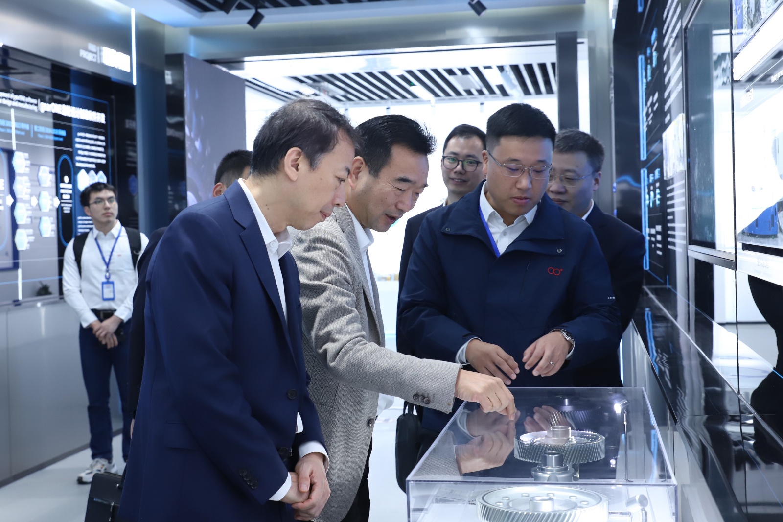 在八分公司新能源齿轮智造工厂,程军一行深入了解了双环传动在新能源汽车齿轮制造领域的产业布局、核心技术与创新成果,并亲身感受了公司在智能制造领域的多项实践。双环传动在数字化转型、绿色制造等方面的成果给来宾留下了深刻印象。