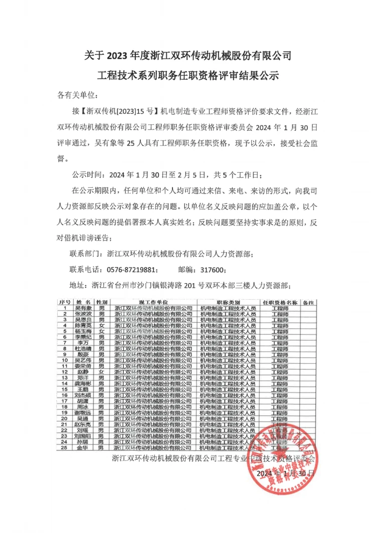关于2023年度开云手机在线官网工程技术系列职务任职资格评审结果公示
