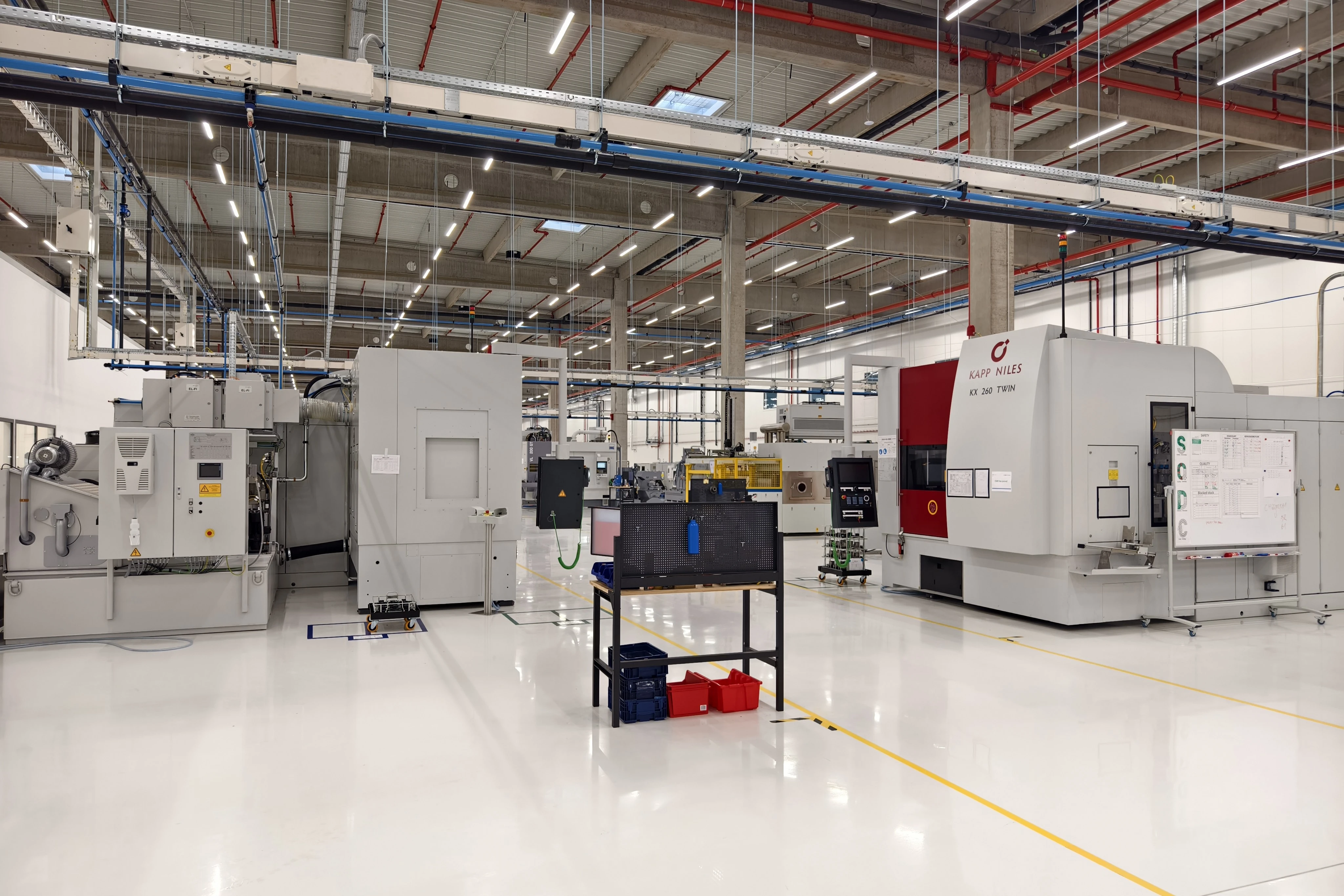 双环传动匈牙利子公司(EVORING)投资官宣暨奠基仪式于2023年11月17日举行,2024年3月,匈牙利工厂正式启动建设。工厂位于匈牙利亚斯费尼绍鲁市,贴近首都布达佩斯,工厂生产规模为2.4万㎡,在各方的共同努力下,在短短6个月的时间实现封顶,并于2025年5月21日迎来交付,已正式可为广大客户提供服务。