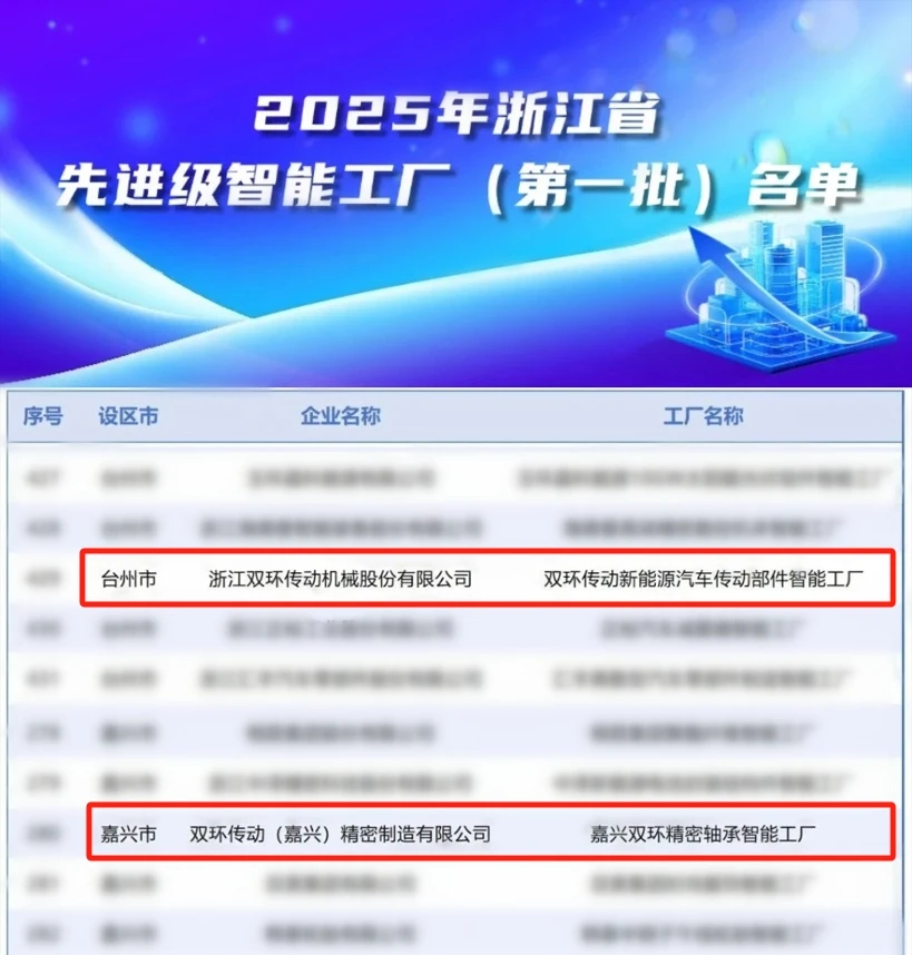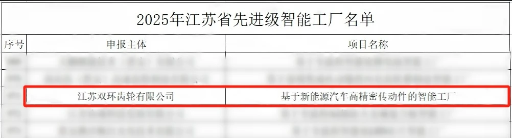 近日,浙江省经信厅、江苏省工信厅分别发布2025年先进级智能工厂名单,双环传动新能源汽车传动部件智能工厂、嘉兴双环精密轴承智能工厂入选2025年浙江省先进级智能工厂(第一批)榜单,江苏双环基于新能源汽车高精密传动件的智能工厂入选2025年江苏省先进级智能工厂榜单。这是对双环多年来数智化转型和创新发展的高度认可,彰显了公司的技术优势和创新价值,为公司未来的发展注入了强大动力。