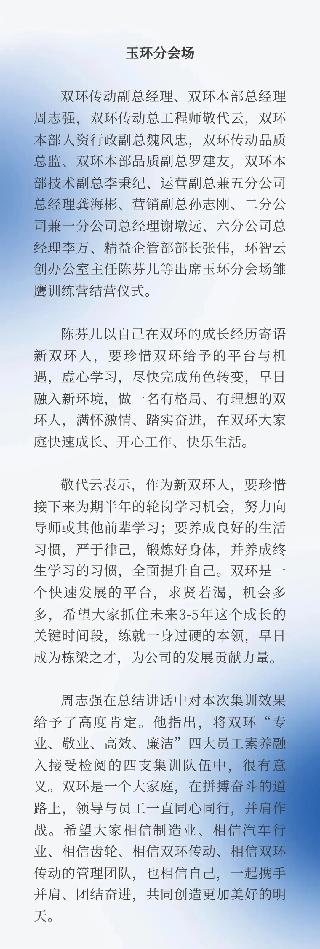 雏鹰展翅 烎战未来 | 双环传动2024届雏鹰训练营开营仪式隆重举行