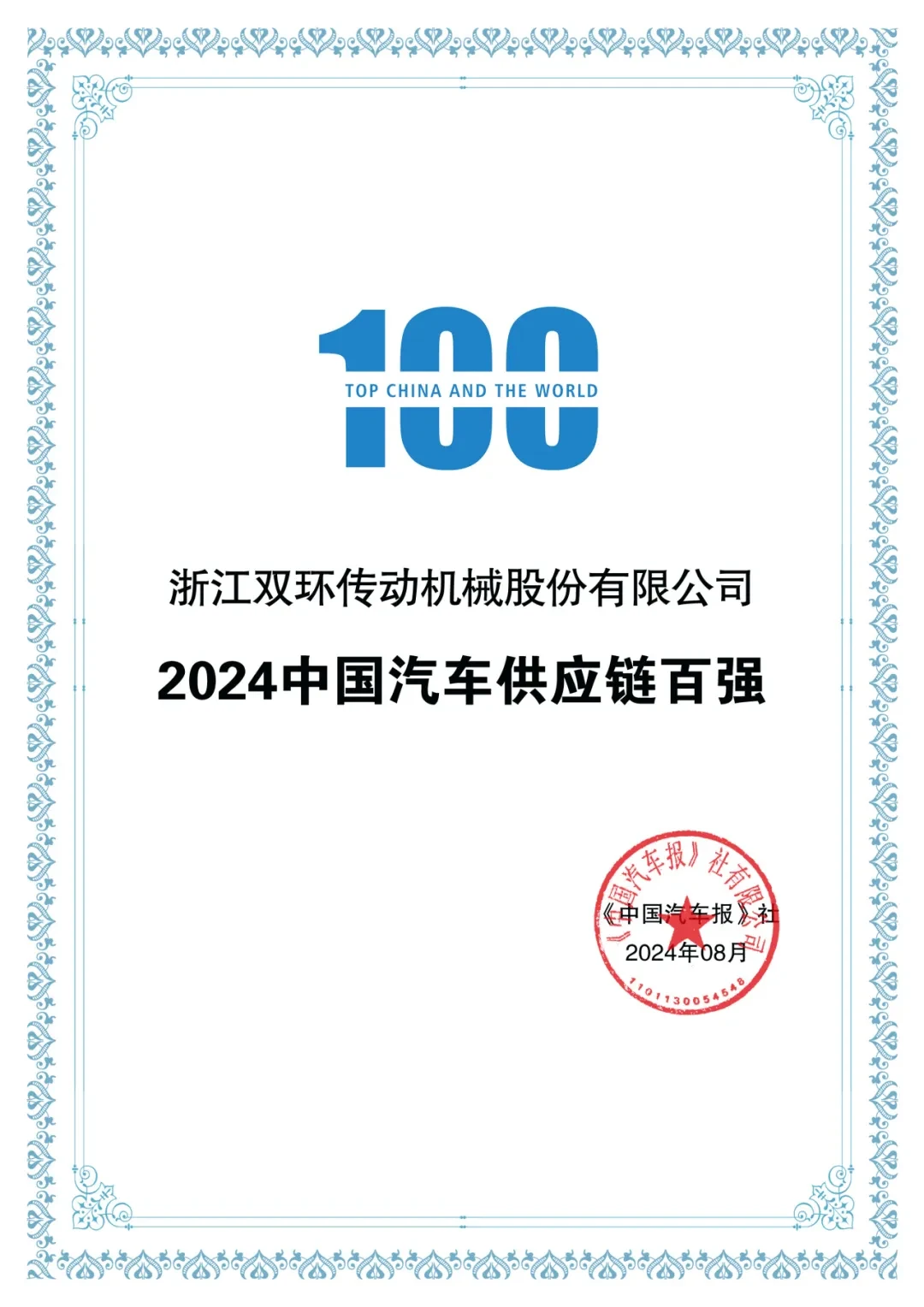喜讯!双环传动再次荣登“中国汽车供应链百强”榜单