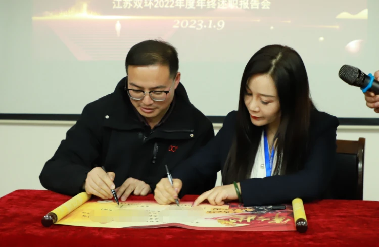 1月9日,江苏双环召开2022年度工作述职报告会议。江苏双环董事长蒋亦卿,江苏双环总经理卢浩等领导出席会议。